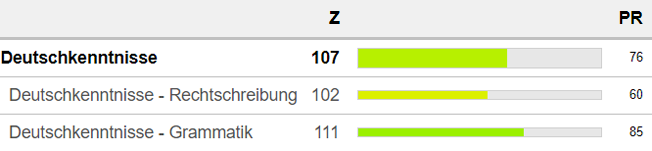 Personen mit hohen Ergebnissen in dieser Dimension verfügen über sehr gute Kenntnisse der deutschen Rechtschreibung und Grammatik und können diese sicher anwenden.